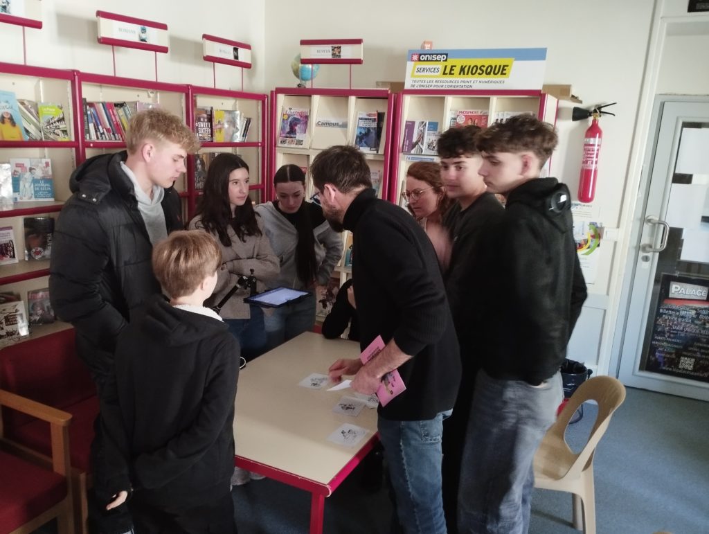 Les 2 et 3 mars 2026, le CDI s’est transformé en véritable studio de cinéma. Les élèves de Seconde MRC1, de Terminale CAP et de 1re bac professionnel MACC ont participé à un atelier consacré au cinéma d’animation et au bruitage, animé par Simon Astié, réalisateur au sein de la compagnie Six Monstres. Cet atelier est rendu possible grâce au dispositif Lycéens au cinéma.